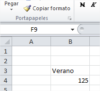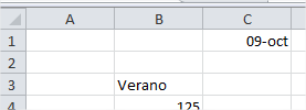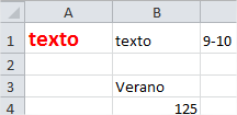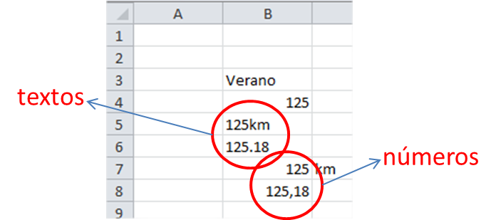 Otra cosa básica que te quiero contar es que Excel intenta distinguir entre textos y números todo el rato. Es decir, depende de cómo escribas Excel interpreta la información como numérica o como textos. Para ello la pista que te da es la alineación. Colócate en la celda B4 y escribe el número 125 (e intro). Verás cómo la palabra verano queda a la izquierda de la celda (texto) y cómo el 125 queda alineado a la derecha (número).