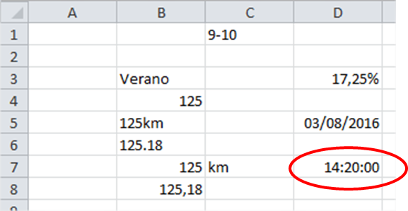 Colócate en la celda D7 y da formato general. Verás que Excel muestra la cifra 0,5972222