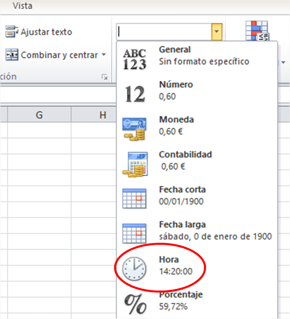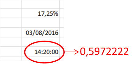 Pues, como te imaginas, detrás de ese horario se esconde un número. ¿Qué número? En este caso se trata de la parte proporcional de 1 día. Es decir, detrás de un horario hay un “cero coma algo..”, por ejemplo 0,5972. El día completo sería un 1, la mitad del día sería 0,5 ¿lo entiendes?