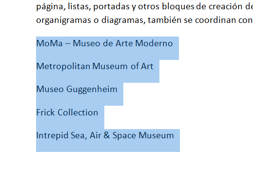 Lo primero es escribir el texto normalmente, sin viñetas y seleccionarlo: