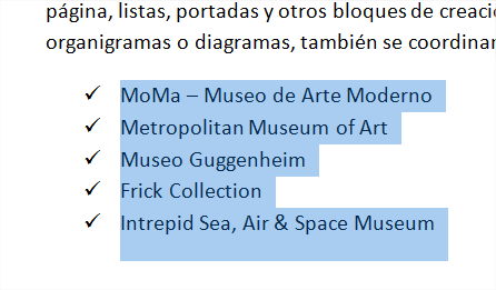 - Símbolo de la viñeta: Fuente Wingdings, código 252