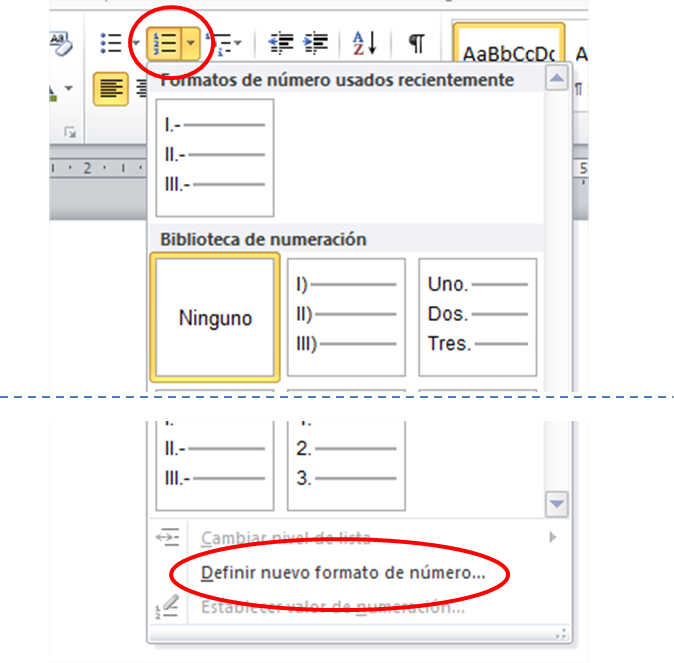 A continuación debes ir al botón Numeración (desplegando la flecha) y elegir “Definir nuevo formato de número”: