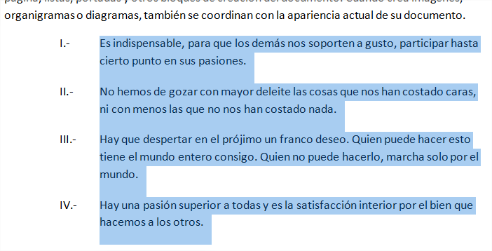 Cuando te encuentres una lista de estas en el examen piensa que lo mejor es escribir el texto normal, sin numeración ni viñetas (eso sí, dando intros en cada párrafo) y luego seleccionarlo todo para finalmente aplicar la configuración necesaria.
